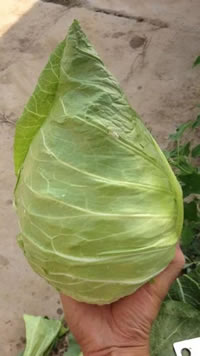 主要特点:杂交一代早熟甘蓝新品种,定植后月50天采收。植株生长健壮,植株半直立,外叶少;球心形,外叶绿色,球重约1~1.3千克,结球紧实,耐裂球,抗逆性较好,口感好。